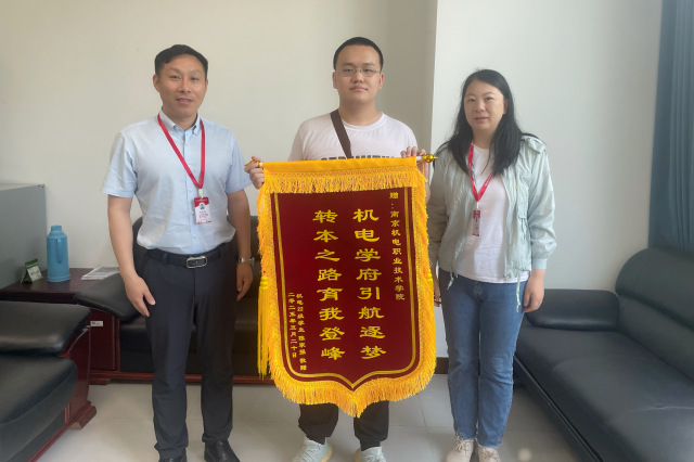 分享会尾声,陈家强同学怀着感恩之情,向母校星空体育·(中国)官方网站赠送锦旗,锦旗上“机电学府引航逐梦,转本之路育我登峰” 的字样熠熠生辉,饱含着他对母校培育之恩的深切感激。培训处处长周云龙、信息工程系党支部副书记陈雪作为校方代表郑重接受锦旗。周云龙表示,这面锦旗不仅是对学校教育教学工作的肯定,更是一种激励,学校将继续努力,为学生成长成才搭建更好的平台。陈雪也鼓励在场同学以陈家强为榜样,明确目标,努力拼搏,在专转本和未来的职业发展道路上实现自己的理想。