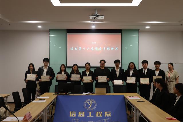 为进一步加强信息工程系团委干部队伍建设,推动团学工作顺利开展,2025年6月11日,信息工程系团委干部竞选暨换届大会在弘毅楼602会议室顺利召开。党支部副书记陈雪、团委书记沈歆岩、学工干事郝麒出席会议,2023级团委干部及2024级竞选干事参会,共同见证重要时刻。本次大会由团委副书记吴上垠主持。