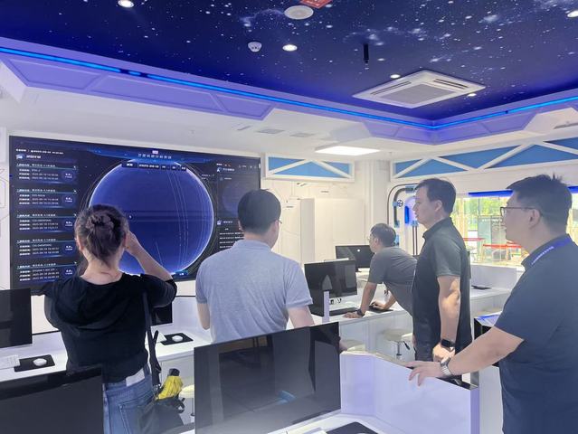 随后,在卫星测控中心,专家们实地观摩了卫星测控的实时操作流程,对学校在卫星测控技术方面的研究与应用有了更为直观的认识。王国珍向专家们详细介绍了学校在航天技术应用方面的研究成果与特色,包括自主研发的航天器姿态控制系统、卫星通信技术等,并通过互动展示,让专家们更直观地了解学校在航天科技、创新设计等领域的教学模式与培养亮点。