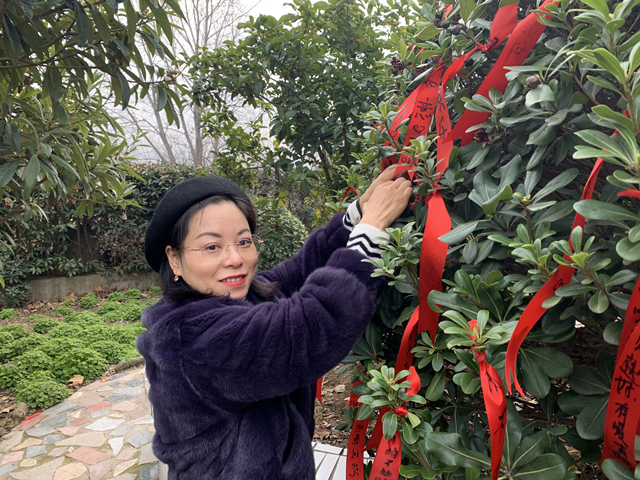 为了将新年的祝福更好的传播,宿管会的同学们也没有忘记去到自己任课老师、辅导员的办公室里,让他们将新年愿望写下来。一时间,各系部办公室中布满了红色的心愿。随着许愿的同学越来越多,许愿树上很快便如同开了花一般,红色的丝带伴着微风轻轻地飘着,仿佛读懂了我们的心思。