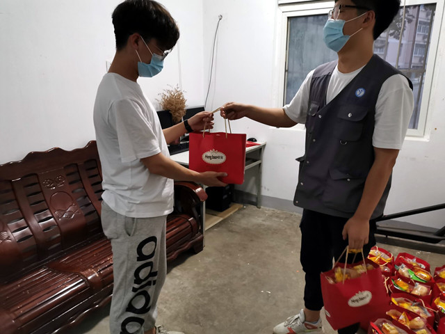 隔离结束在即,为了感谢在疫情期间,不辞辛劳地协助宿管老师每天进行晨检、查房等工作的各楼层长以及宿管会成员,2020年6月1日,宿舍管理委员会指导老师张进宝借着“儿童节”这个特殊的日子,给我们送来了最诚挚的祝福以及最暖心陪伴,同时也为我们这群辛勤付出的“大孩子们”精心准备了小零食袋。希望这小小的心意,在带给我们温暖的同时,也能让我们重温儿时的味道,带我们找回那一抹青涩而又温馨的记忆。