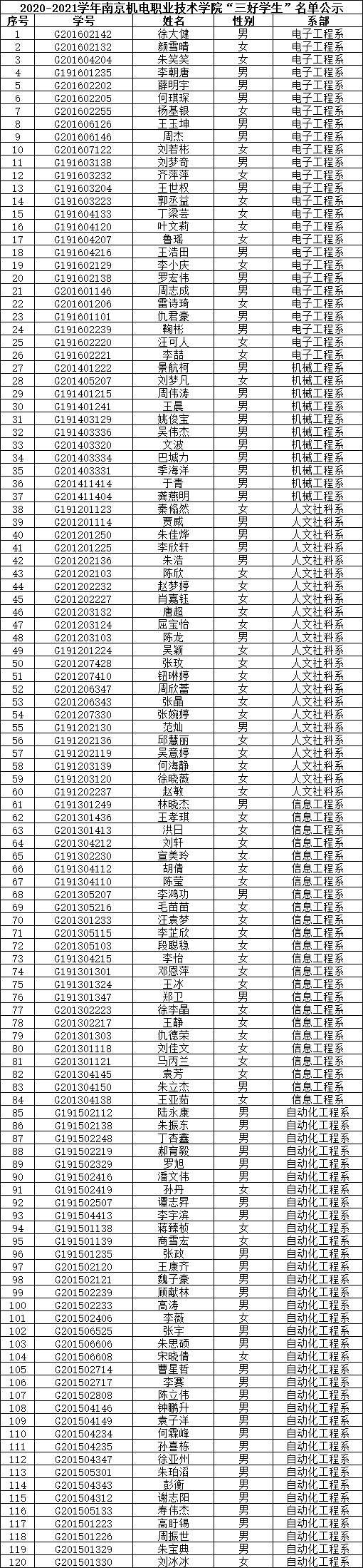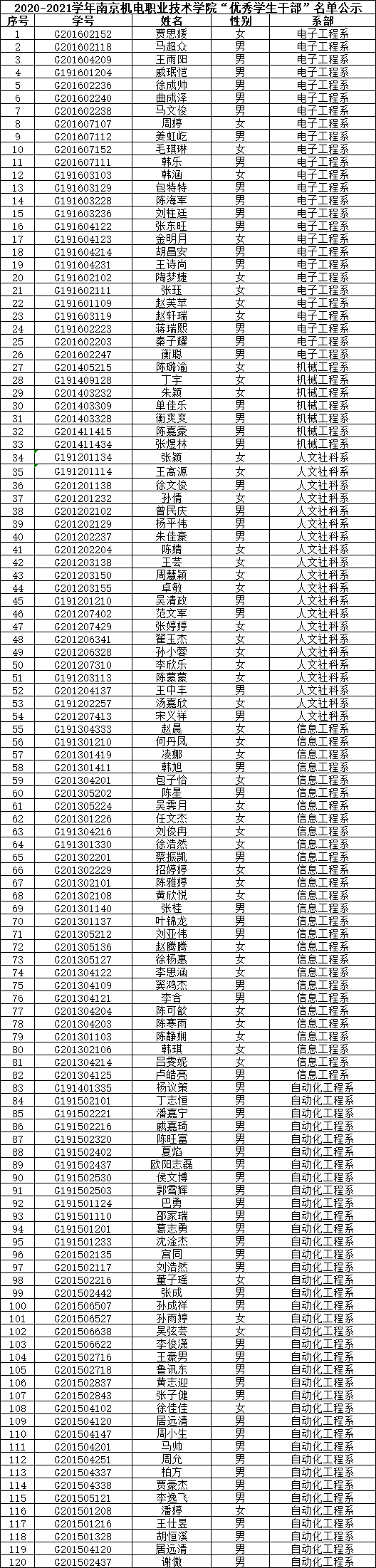 根据《关于评选2020-2021学年“三好学生”、“优秀学生干部”和“文明班级”的通知》规定,经学生本人申请、班级评议,系部审核推荐,学生工作处核准,学校审批,在公平、公正、公开的基础上,拟评选出以下个人和班级为2020-2021学年星空体育·(中国)官方网站“三好学生”、“优秀学生干部”、“文明班级”,现将名单公示如下。