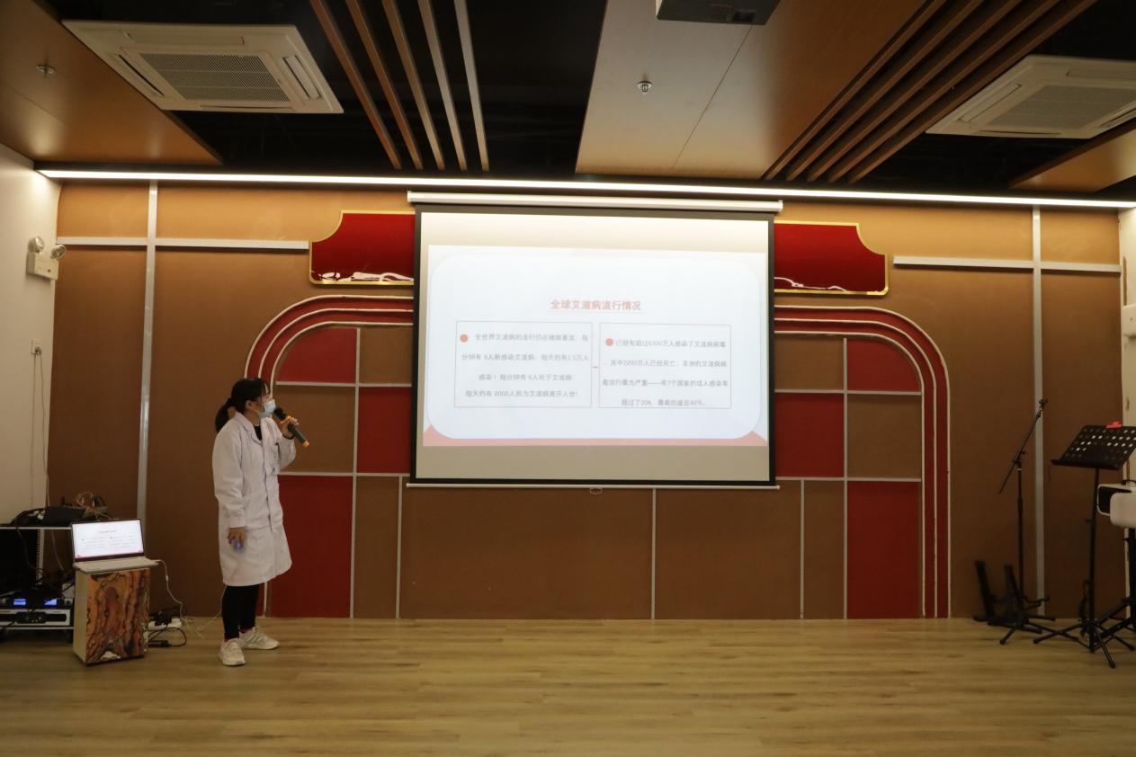 2021年12月1日是第34个“世界艾滋病日”,为加强我校大学生艾滋病防治意识,推进校园卫生健康建设,2021年12月1日中午,由学工处主办、校学生会承办的“终结艾滋,共建美好校园”艾滋病防治宣传活动在大学生餐厅门前广场举行。