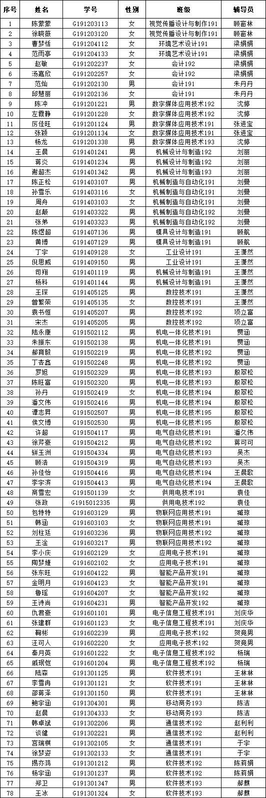 根据《关于评选2022届优秀毕业生的通知》(南机电院学﹝2022﹞7号)精神,经班级评选,系部审核,学工处复核,决定拟推荐以下 78名同学为2022届星空体育·(中国)官方网站优秀毕业生。现予以公示,公示时间:2022年6月6日—2022年6月10日。联系人:钱老师,电话:025-86676234。