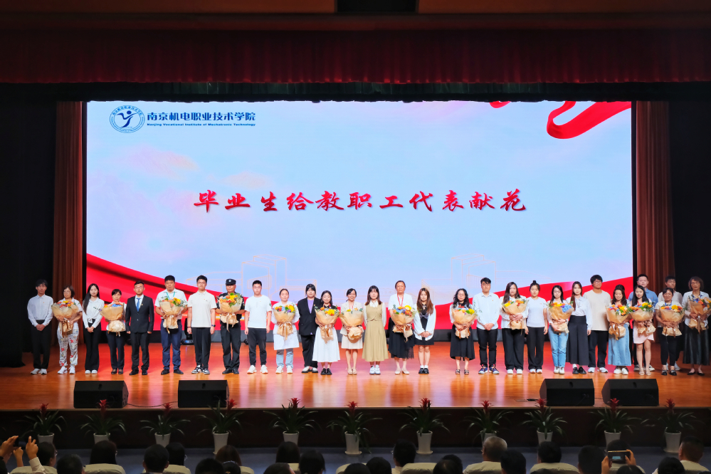 党委书记、校长周庆礼为2024届毕业生送上寄语,他代表学校向毕业生表示热烈的祝贺和诚挚的祝福,向辛勤培育学生的老师们表示致敬和感谢。他回首三年时光,同学们用热辣滚烫的青春,书写了属于鹿鸣大道33号的故事;用努力拼搏的意志,共同见证学校跨越式发展;愿未来毕业生们也可以用意气风发的姿态,绘画出属于中国青年的绚丽画卷。他希望同学们无论走到哪里,都要不忘校训,敢闯敢拼,发扬南机电人的精神气质,将人生的篇章写得更加华彩!在毕业之际,他与同学们分享三句话:一是向下扎根,用坚定的初心,脚踏实地为人生锚定方向;二是向上生花,用创新的精神,风雨无阻向目标蓄力扬帆;三是逐光而行,用过硬的信念,锲而不舍向理想逐浪前行。
