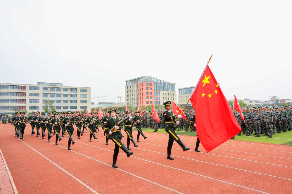 大会在庄严的国歌声中拉开帷幕。随后举行的军训成果汇报展示中,各营方队以昂扬的姿态依次通过主席台。国旗护卫队步伐铿锵,彰显护卫国旗的使命担当;信息工程系“奋进营”将代码的严谨融入队列规整;机械工程系“卓越营”展现工科学子的精工品质;自动化工程系“敏行营”演绎智能时代的精准协同;人文社科系“看齐营”彰显人文底蕴与军人品格的交融;电子工程系“慎行营”展现电子人的严谨专注。同学们整齐的步伐、响亮的口号,充分展现了军训取得的丰硕成果。