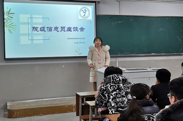 2020年12月29日12:30,质控办在A311召开院级学生信息员座谈会,质控办李清主任及学院19、20级全体学生信息员参加了本次座谈会。