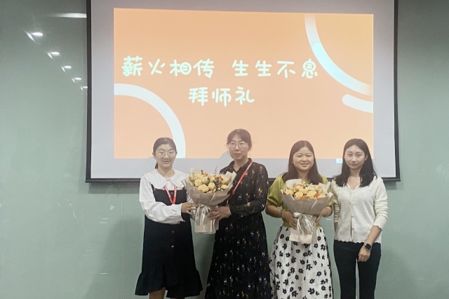 “师徒”结对确定后举行了拜师仪式,徒弟们向师傅送上鲜花并施拜师礼,双方通过学习学校督导工作方案明确师徒双方各项职责。