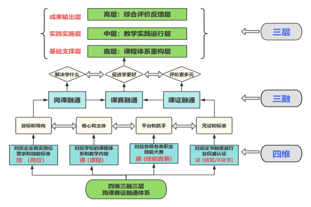 图1:“四维三融三层”岗课赛证融通育人体系