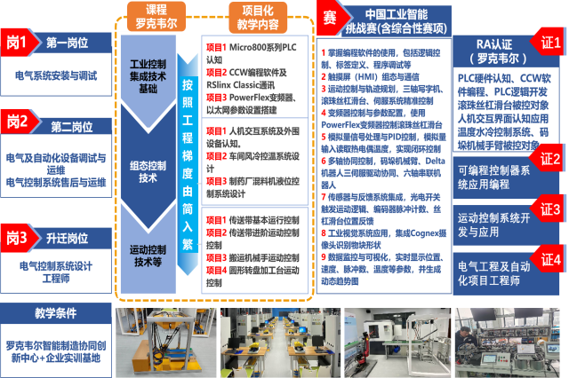 共建“三融”实践平台:联合罗克韦尔等头部企业共建“智能制造协同创新中心”,引入企业真实生产线设备,打造“教学 - 竞赛 - 生产”一体化实训基地,实现“岗课赛证”功能全域覆盖,为实战化教学提供硬件支撑。