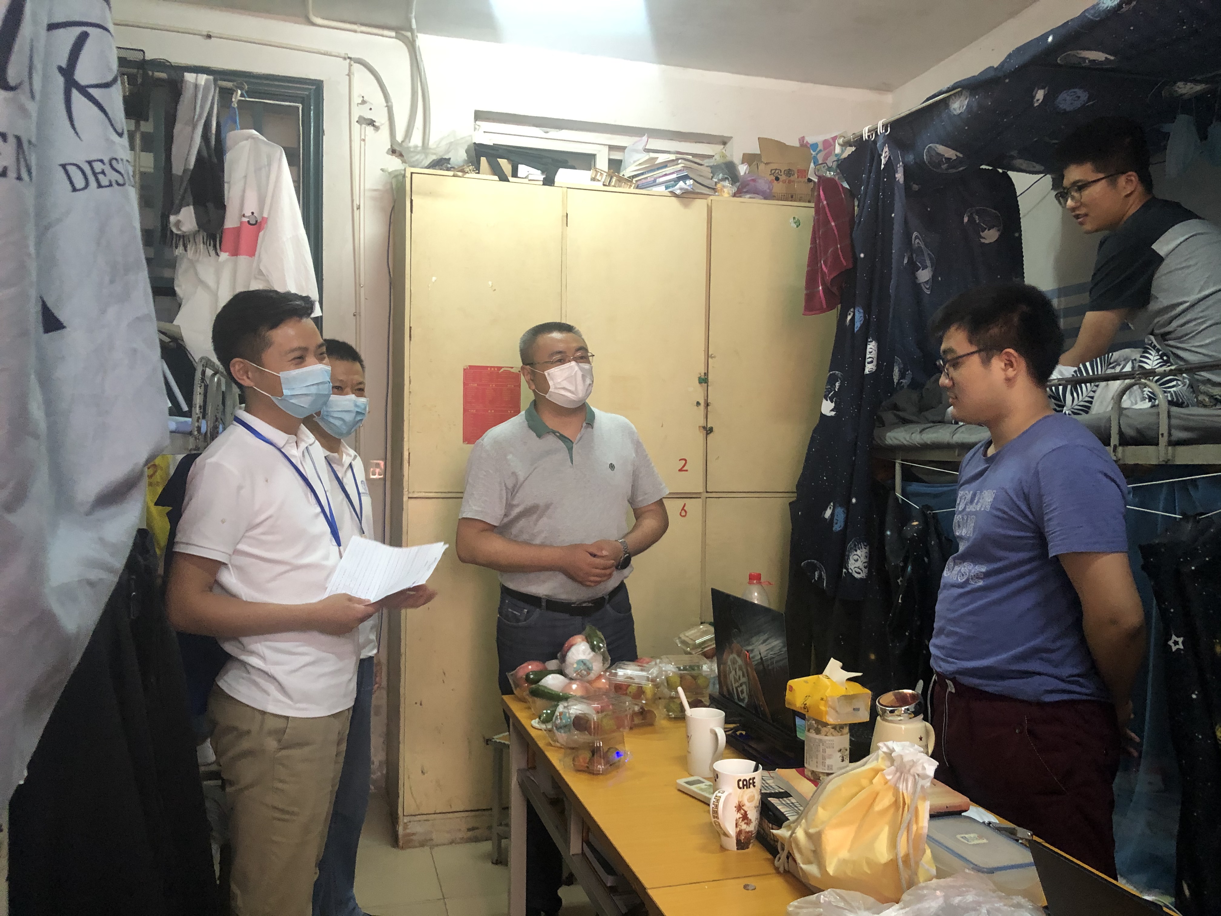 高水冕书记耐心的去往每一个宿舍关心同学们的健康,对于大家的问题也耐心的一一解答。他说,感谢同学们一直以来的理解与配合,系部为大家准备的水果,希望能为这个炎炎的夏天带来一丝微风。走访过程中,学院及系部领导认真倾听学生心声并解答学生困惑。
