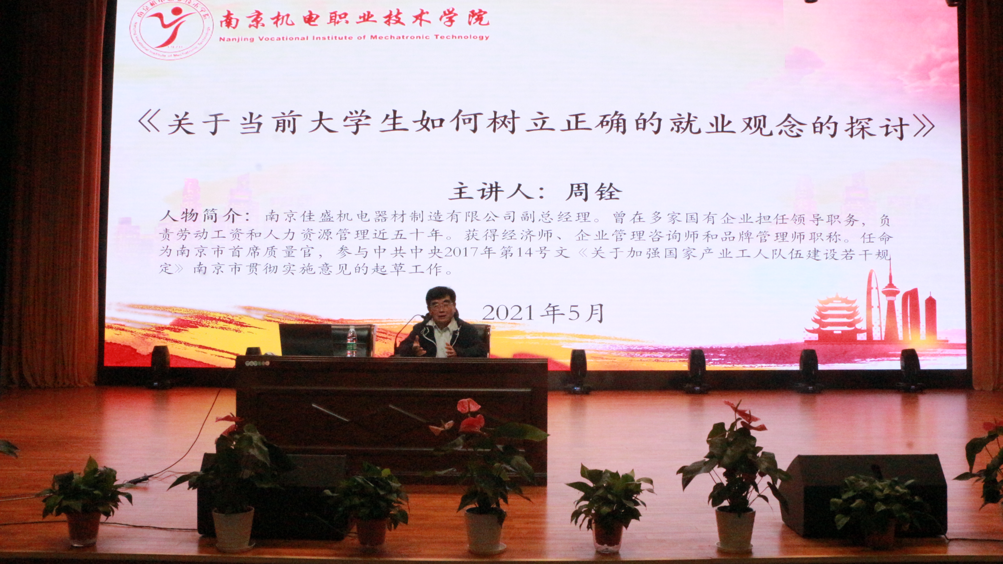 南京佳盛总经理周铨在讲座中分享了两位大学生的成功实例,并对当前大学生如何树立正确的就业观念提出了自己独到的见解,讲座就当代大学生就业存在的问题、什么是正确的就业观、如何帮助大学生树立正确的就业观三个层面展开主题讲话。周总还联系自身经历讲述在校大学生如何看待今天的就业形势,作为求职者,应学会正确分析自己的长处与短处,面对目前的就业形势,学会转变就业观念。