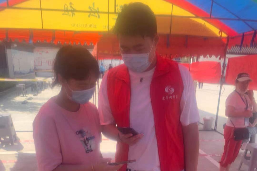 供用电技术202班的祁卢缘在他的老家盐城市盐都区龙冈镇核酸检测点志愿服务,他说:“我的工作职责是听从指挥的调动,作为机动组的一员,检测体温,登记信息。在炎日中,即使是坐着也是会汗流浃背。志愿者的岗位是平凡的,但坚守的身影是最美的,不为掌声,不为鲜花,不求赞美,只为心中的那份责任,相信只要我们携手克难,定会战胜疫情!”