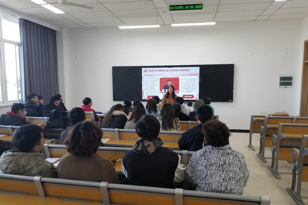 施老师给同学们解读了十九届六中全会的主要会议精神。今年是中国共产党成立100周年,在这特别的日子里,中国共产党第十九届中央委员会第六次全体会议于2021年11月8日至11日在北京举行。全会审议通过的《中共中央关于党的百年奋斗重大成就和历史经验的决议》。党的十九届六中全会其历史意义非凡。“我们党已先后制定了两个历史决议。从建党到改革开放之初,党的历史上的重大是非问题,这两个历史决议基本都解决了,其基本论述和结论至今仍然适用。”习近平总书记指出,“这次全会决议要把着力点放在总结党的百年奋斗重大成就和历史经验上,以推动全党增长智慧、增进团结、增加信心、增强斗志。”