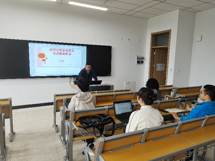 2022年4月20日,十三届全国人大常委会第三十四次会议审议通过新修订的职业教育法,于今年5月1日起正式实施。5月10日上午,供用电技术教研室全体教师在博学楼203开展新职业教育法专题研讨会。