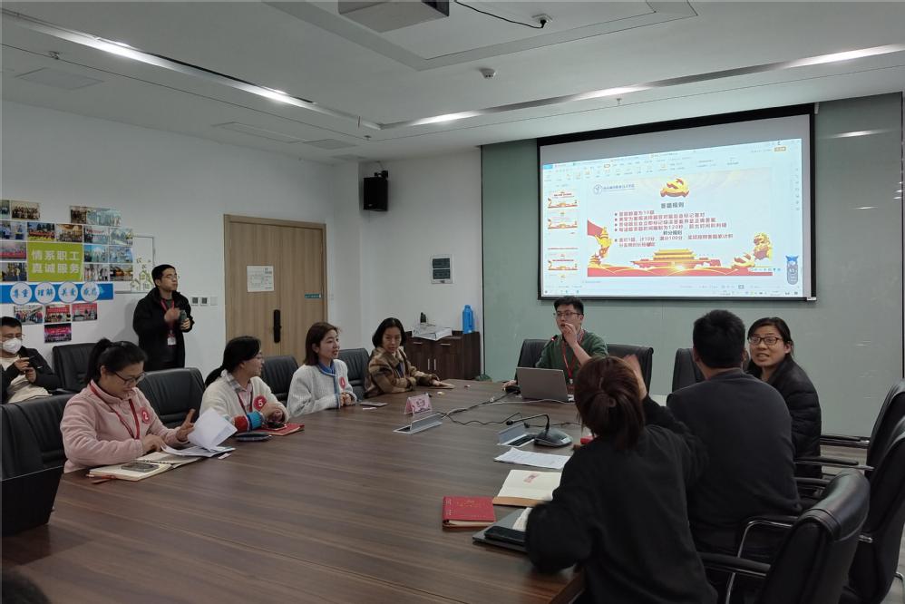 本次活动采用现场竞答的形式进行,竞答题目题型分为单选题,多选题,内容涵盖党的二十大报告、《中国共产党章程》和中国共产党党史等,比赛时长为10分钟,总分100分。活动由支部宣传委员潘久伟主持,全系教师积极参与,现场气氛活跃。每道题目抢答结束后潘老师又对题目进行了详细的解答,党员同志们边答边学,极大地提升政治理论学习的实效性。