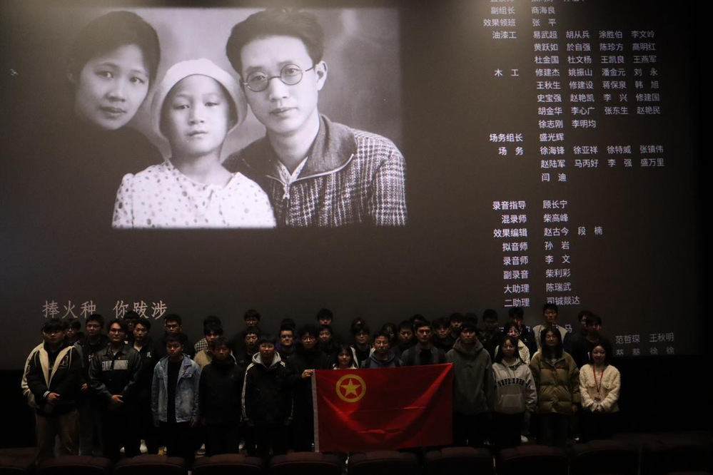 同学们怀着崇敬与期待的心情走入影院,电影放映过程中,大家聚精会神,情绪随着影片情节而起伏波动。该片以瞿秋白被捕后在狱中回忆作为故事主线,生动讲述了“常州三杰”——中国共产党早期三位杰出的领导人瞿秋白、张太雷和恽代英的光辉事迹和革命情怀,这三位中国青年共产党员在中国革命阵地上,带领有志之士用年轻的生命探索和实践革命之路的故事,展现了他们短暂而光辉的人生、非凡而高尚的人格魅力、坚毅而浪漫的革命情怀,充分体现了一百年前爱国青年、无产阶级革命者们心系“国家事”、肩扛“国家责”的自觉追求。