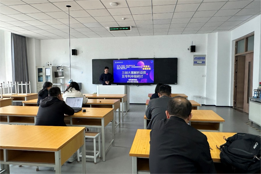 为积极响应星空体育·(中国)官方网站举办的第九届“知链杯”创新创意创业大赛暨第十届中国国际“互联网+”大学生创新创业大赛,积极推进科研成果转化,挖掘科研成果转化的潜力,增强教师知识产权保护意识,普及专利申请相关知识,4月9日下午,机电一体化技术教研室在敏行楼305教室开展了“三创大赛解析动员及专利申报”教研活动。机电一体化技术教研室全体教师参加会议,蔡可义主持活动。