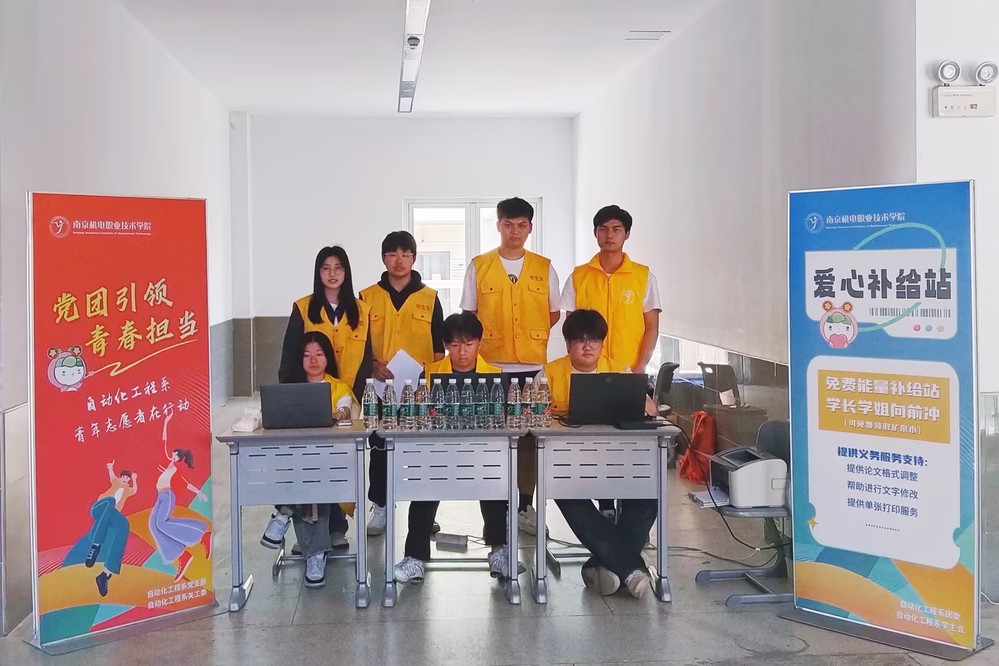 4月27日,为切实服务师生,展现青年大学生的责任与担当,在自动化工程系党支部的引领下,系关工委、系团委组建了爱心补给站,用实际行动服务2024届毕业生答辩工作。