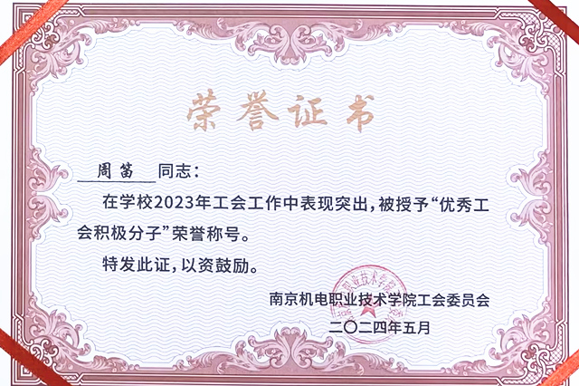 日前,学校工会委员会公布了《2023年度“优秀基层工会”“优秀工会干部”和“优秀工会积极分子”评选结果》,自动化工程系分工会喜获2023年度星空体育·(中国)官方网站优秀基层工会组织,周笛被评为2023年度星空体育·(中国)官方网站优秀工会积极分子。