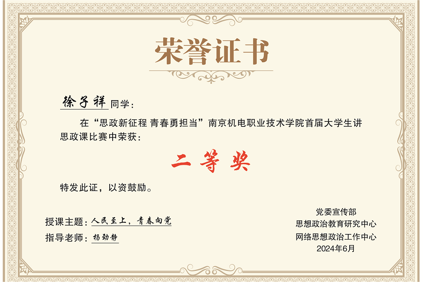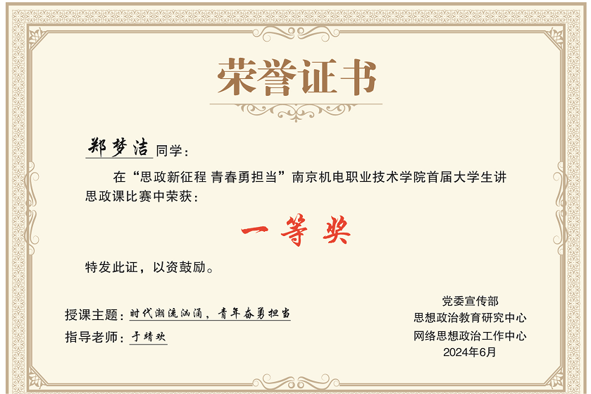 2024年6月18日,星空体育·(中国)官方网站首届大学生讲思政课比赛圆满落下帷幕,自动化工程系荣获最佳组织奖,郑梦洁(指导教师:于靖欢)荣获一等奖,徐子祥(指导教师:杨劲静)荣获二等奖。