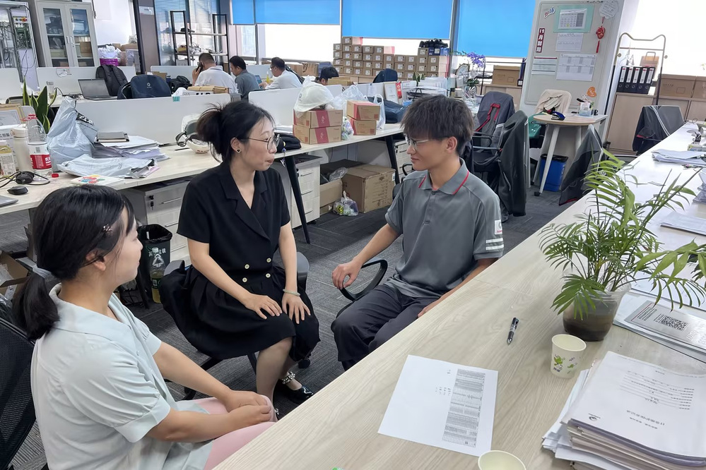 迅达电梯南京分公司人事经理张明对系部教师的到来表示热烈欢迎,并进行热情接待张经理来访老师详细介绍了实习生的实习情况,叶老师、孙老师也和附近维保站点的朱梦伟同学详细交流了近一个半月的实习经历并给予勉励。
