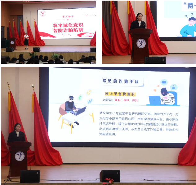 诚信是高校资助育人工作的基础,事关学生健康成长和高校人才培养。为推动校园诚信文化建设,增强学生诚信意识和安全意识,系部邀请了郑梦洁进行“筑牢诚信意识、智防诈骗陷阱”主题演讲。