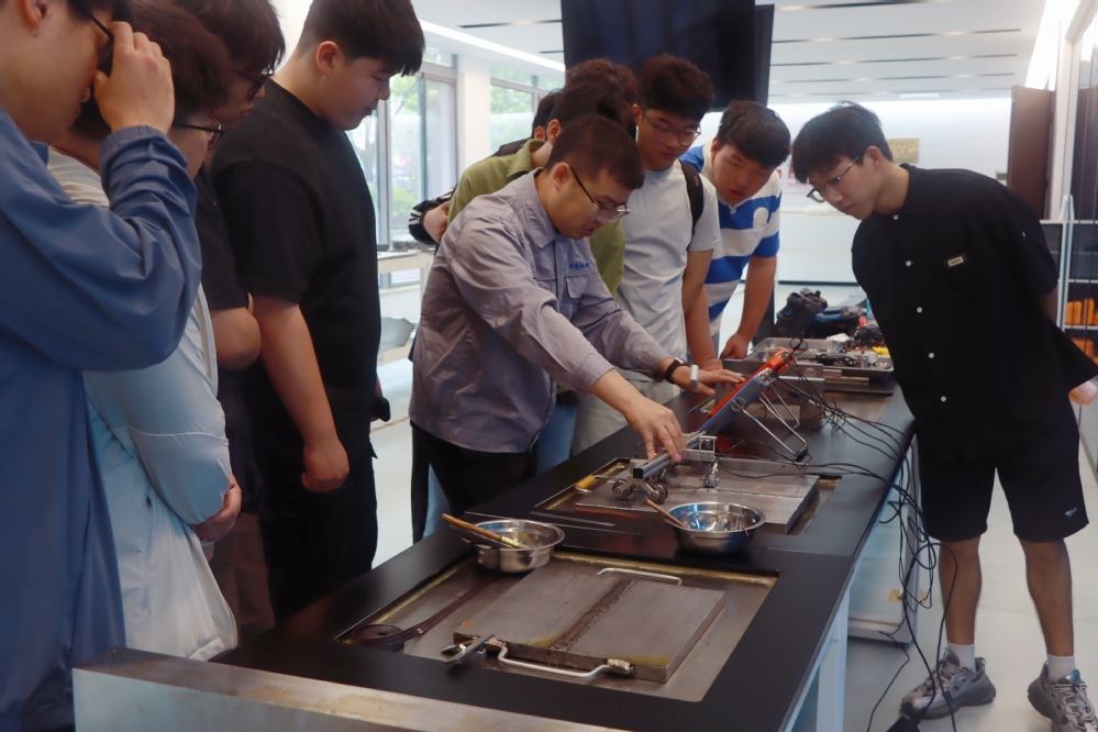 师生一行在企业人员陪同下参观了南京华建重点实验室。在技术专家的介绍引导下,师生详细了解无损检测、电气装置及设备检测调试、自动化仪表检测调试等多个专业实验室,近距离接触行业前沿技术与设备,直观感受专业知识在实际场景中的应用。