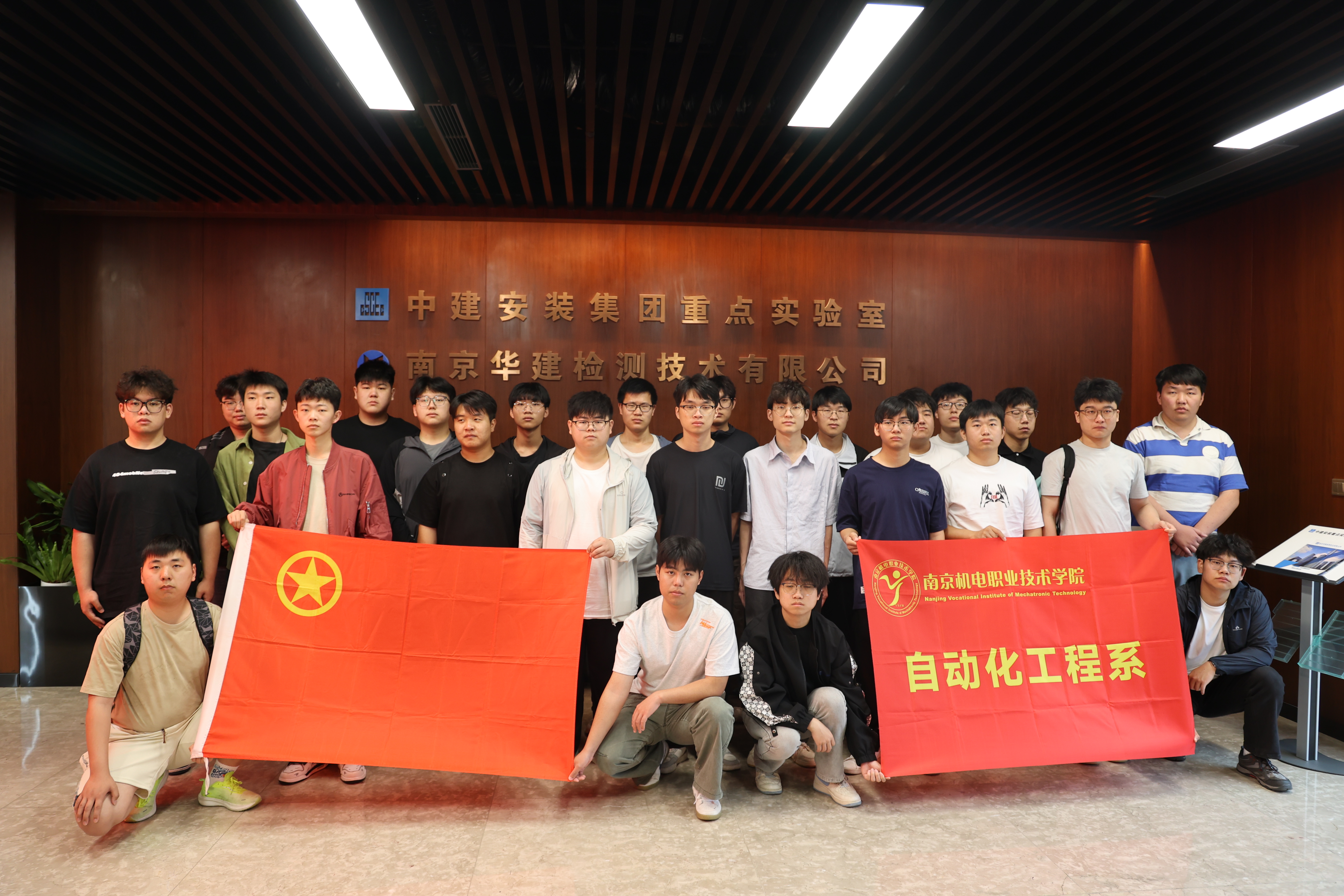 5月15日下午,自动化工程系近30名即将开展岗位实习的2023级学生参与“青柠实践实境课堂”活动。同学们在系团委书记周笛、系党支部组织委员、就业干事俞青老师带领下走进南京华建检测技术有限公司参观学习,南京华建检测技术有限公司党总支副书记、工会主席高传喜、公司综合管理部经理邢丽娟热情欢迎来访师生。
