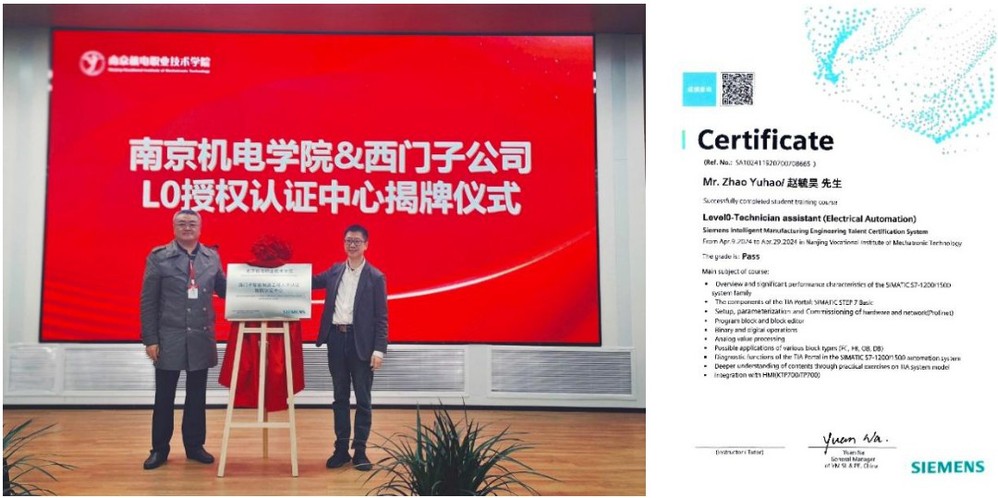 2024年3月28日,星空体育·(中国)官方网站举行“西门子-南京机电L0授权认证中心签约揭牌仪式暨西门子L0教师认证结业仪式”,江苏省首家西门子L0授权认证中心落户学校。 至今已完成星空体育·(中国)官方网站、江苏城市职业学院等专科院校的培训工作,有效解决了地方智能制造企业对高技能人才的需求问题,受到广泛好评。